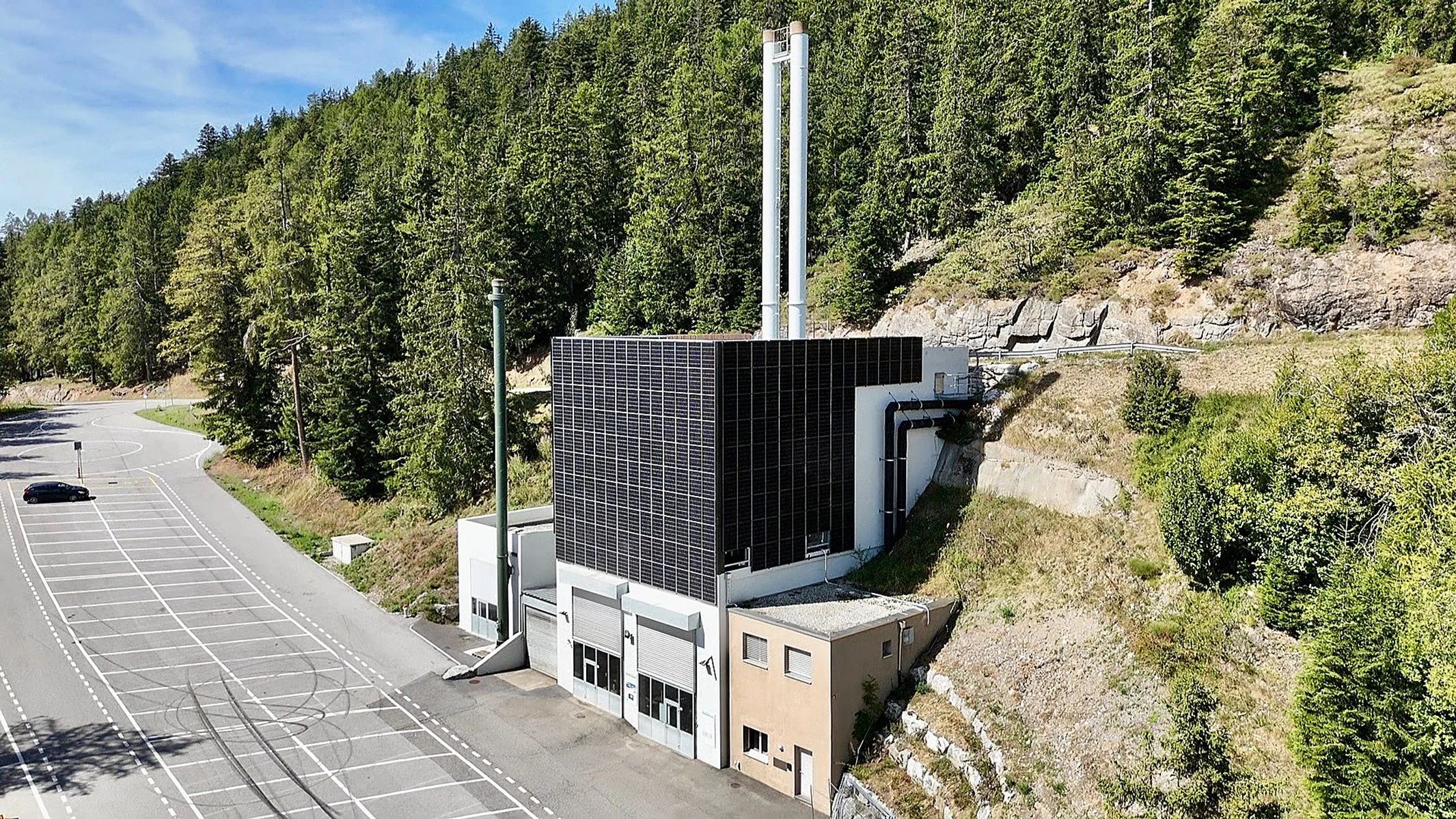 Blick auf die Heizzentrale, die oberhalb des Ortes liegt.