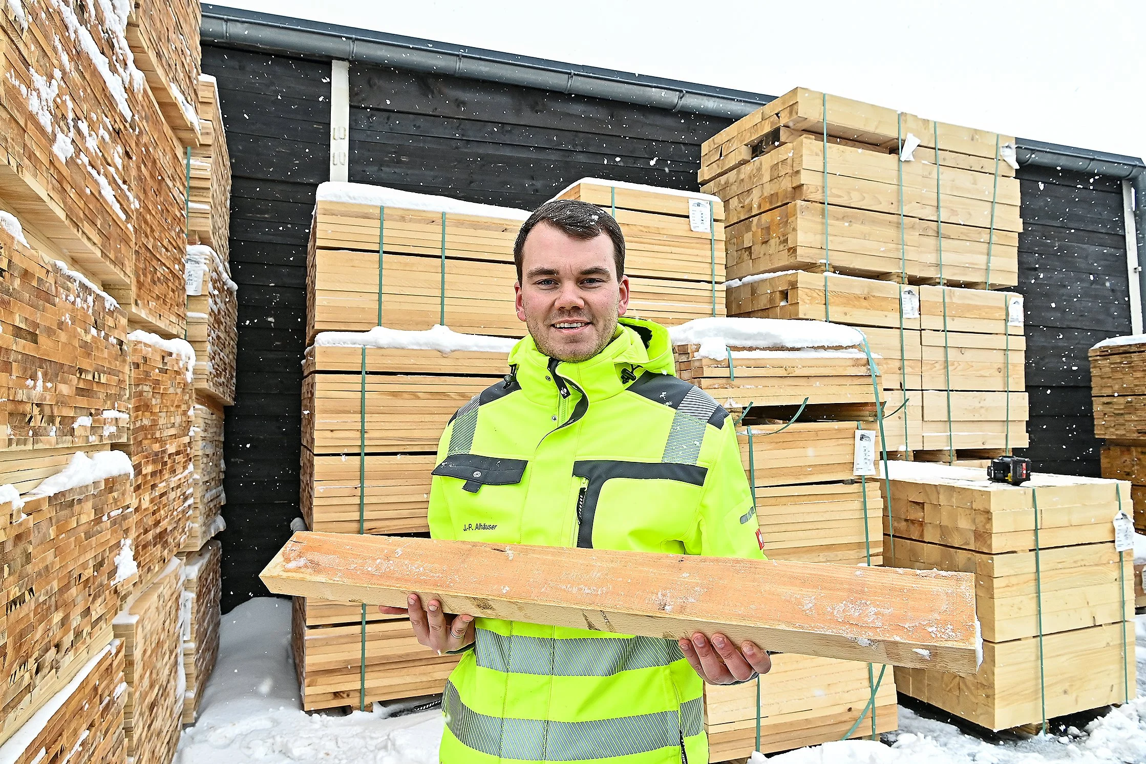 Der Vorteil der Bretter aus Buche sei insbesondere deren gegenüber Nadelholz höhere Festigkeit, erläutert Jan-Philipp Alhäuser. „Manche Kunden bauen Hybridpaletten, also ein Nadelholz und Buche kombiniert.“ Das bringe ihnen eine größere Stabilität. „Andere Kunden wiederum verraten uns auch nicht unbedingt, was sie mit dem Buchenholz genau machen; das ist ja auch legitim. Wir sind nur dazu da, das Material zu liefern“, sagt er.