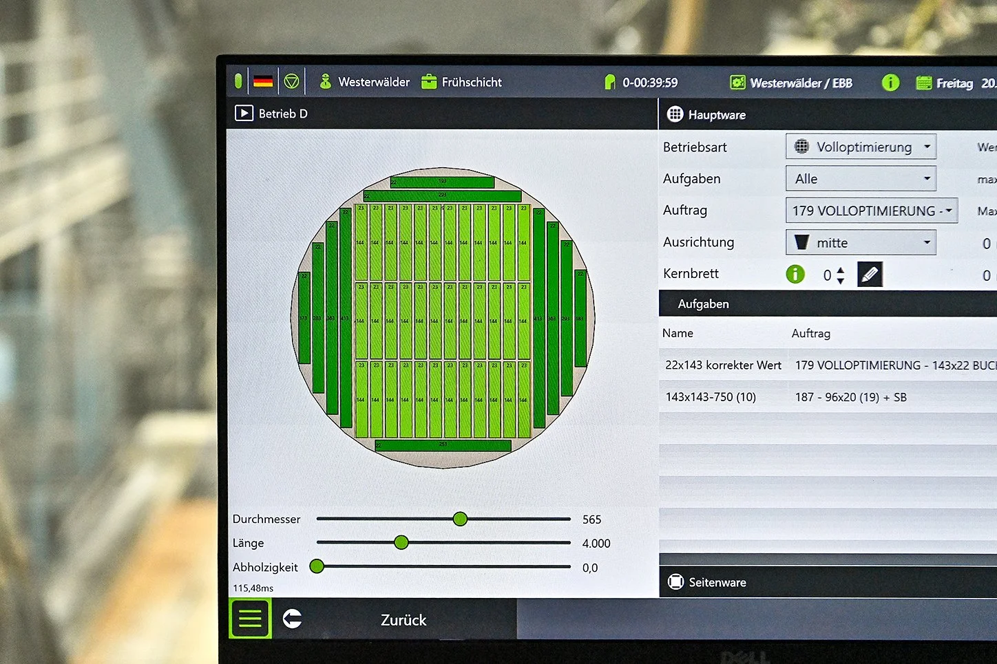 Diese Vorgehensweise, so der Betriebsleiter, sei nicht allein technisch sinnvoll, um die schwieriger zu sägende Buche bearbeiten zu können, sie erhöhe zudem die Ausbeute. Diese sei dann noch besser als beim Nadelholz, nur ein besonders geringer Anteil des Stammes bleibe auf diese Weise als Sägenebenprodukt für eine andere Nutzung wie die Pelletproduktion übrig. „Das Verfahren wird durch das mehrfache Drehen ein bisschen aufwändiger, denn es erfordert mehr Bearbeitungszeit je Stamm. Doch dafür ist eben die Ausbeute besser“, stellt Alhäuser die Vorteile noch einmal heraus.
